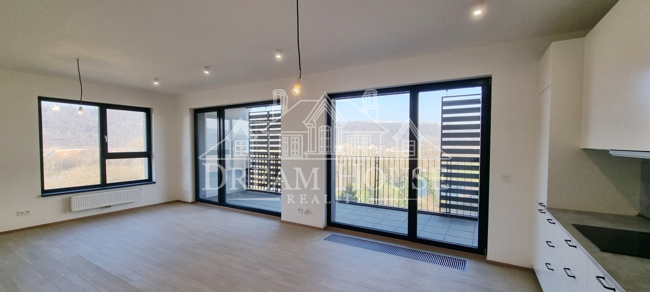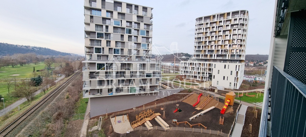 Dovolujeme si Vám nabídnout k pronájmu slunnou novostavbu bytu 3+kk s terasou/lodžií (14m2), o celkové ploše 106m2, situovanou v 5. patře novostavby (z r. 2022) Rezidence Moje Zahálka na Praze 12 - Modřanech (ul. Mezi Vodami).