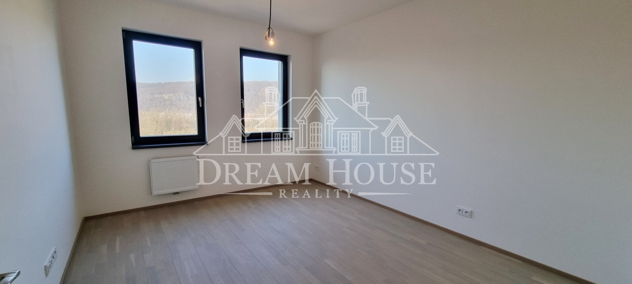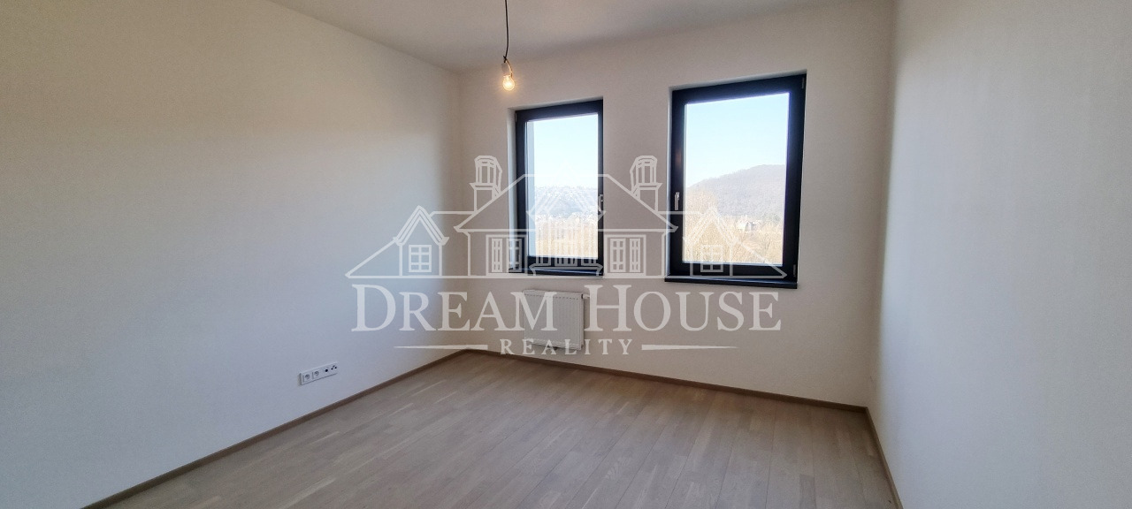 Byt se pronajímá nezařízený, pouze nová kuchyňská linka s vestavěnými spotřebiči (el. varná deska, el. trouba, myčka nádobí, lednice s mrazákem). Sestává se z velké vstupní předsíně, hlavní obytné místnosti (39m2) s kuchyňským koutem a vstupem na terasu, dvou ložnic (každá 14,5m2), koupelny s vanou se sprchovou zástěnou, toaletou a přípojkou na pračku/susičku, a druhé samostatné toalety.