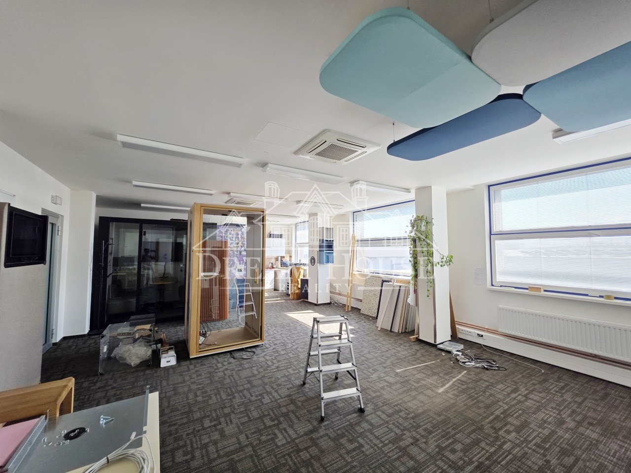 Kancelářské prostory (s ozn. A12/2.15 a 2.06+2.07) se skládají z 2 větších souborů kanceláří (152,27m2 a 101,11m2), které jsou klimatizovány a vybaveny vlastními kuch. kouty. Podlahové krytiny tvoří zátěžové koberce. Kanceláře se pronajímají jako nezařízené.
