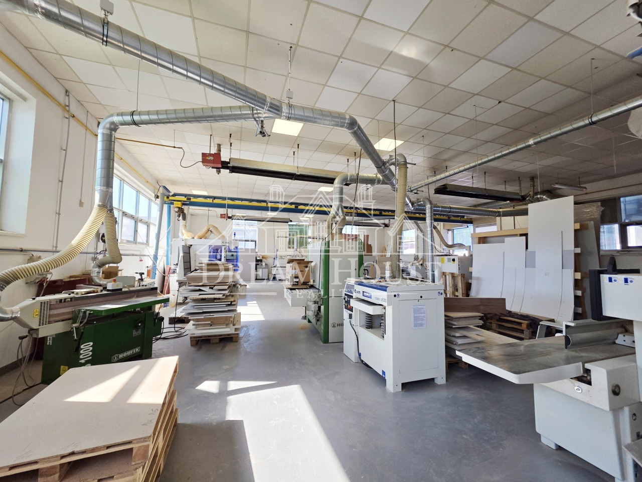 Zděná výrobní hala s novou střechou a novou betonovou podlahou (s ozn. A6) disponuje nakládacím jeřábem s nosností až 2t, kterým lze dopravit z venkovního prostoru do haly náklad/materiál. V hale k dispozici menší skladovací místnost/výrobna o ploše 56m2. Vjezd/vchod do haly manuálně ovládanými vraty.