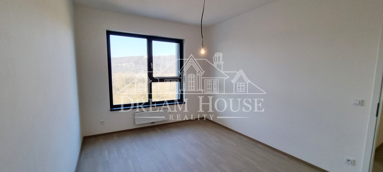 Byt se pronajímá nezařízený, pouze nová kuchyňská linka s vestavěnými spotřebiči (el. varná deska, el. trouba, myčka nádobí, lednice s mrazákem). Sestává se z velké vstupní předsíně, hlavní obytné místnosti (39m2) s kuchyňským koutem a vstupem na terasu, dvou ložnic (každá 14,5m2), koupelny s vanou se sprchovou zástěnou, toaletou a přípojkou na pračku/susičku, a druhé samostatné toalety.