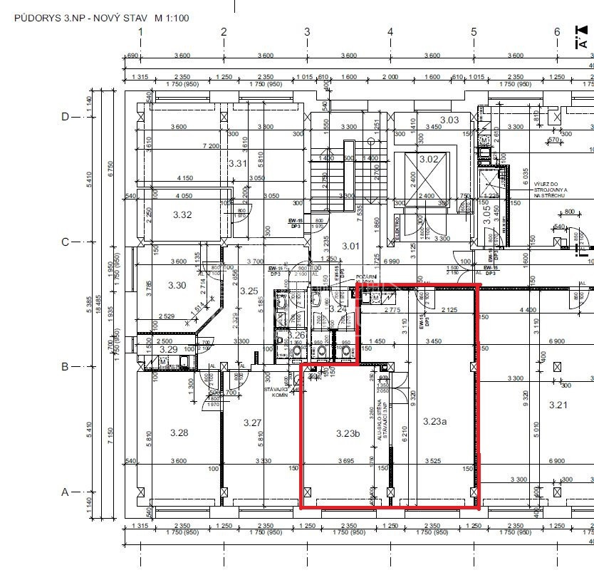 Kancelářské prostory (ozn. 3.23a + 3.23b) se skládají ze 2 kanceláří, z nichž v první z nich (průchozí) je vlastní kuchyňská linka s lednicí a myčkou nádobí (za zástěnou).